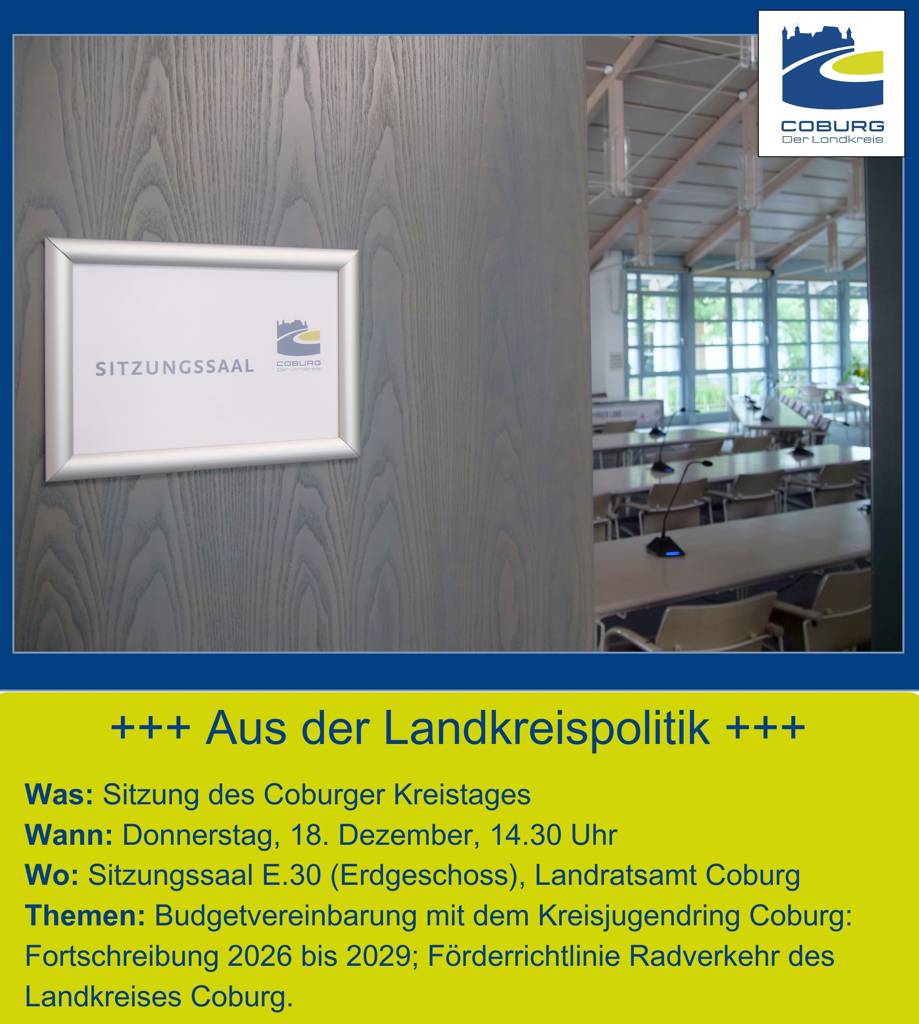 Der Coburger Kreistag trifft sich am morgigen Donnerstag zu seiner letzten Sitzung des Jahres.