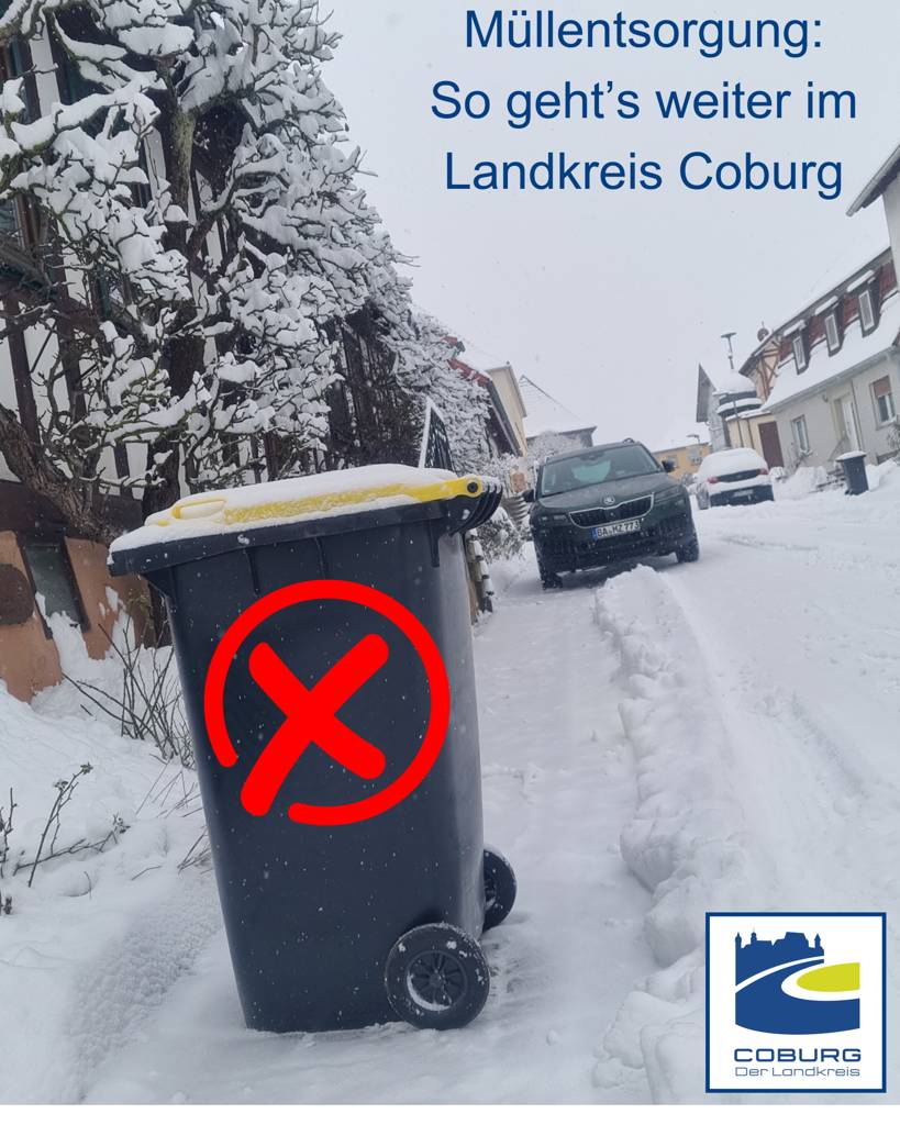 Aufgrund von Schnee- und Eisglätte waren folgende Bereiche für die Entsorgungsfahrzeuge nicht anfahrbar: Kipfendorf (Thieracher Weg, Gartenweg, Am Hügel, Kemmater Weg, Büchenstirn), Einberg (Honigleite, Hohe Wart), Waltersdorf (alle Nebenstraßen), Mittelberg (Schneidersberg, Bachgasse, Schiedsberg, Schmitzleite), Fischbach (Höllwiesenweg, Rückerswinderstraße, Schrotweg), Fornbach (Entsorgung nur bis Ortsmitte), Mönchröden (Am Rießberg) und Weißenbrunn vorm Wald (komplett).