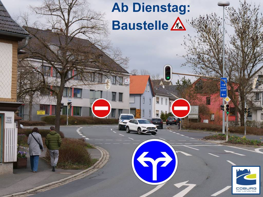 Wichtig für den ÖPNV: Die Bushaltestelle Coburger Straße (Richtung Großheirath) entfällt vorübergehend. Eine Ersatzhaltestelle befindet sich am Rathaus.