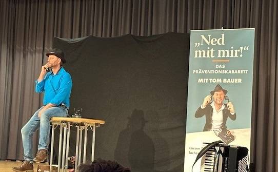 Mit seinem Programm "Ned mit mir" richtet sich der Kabarettist Tom Bauer an Personen ab 60 Jahren und möchte so mit einer Bühnenpartnerin der Polizei Oberfranken auf unterhaltsame Weise über die gängigsten Maschen des Trickbetruges aufklären.