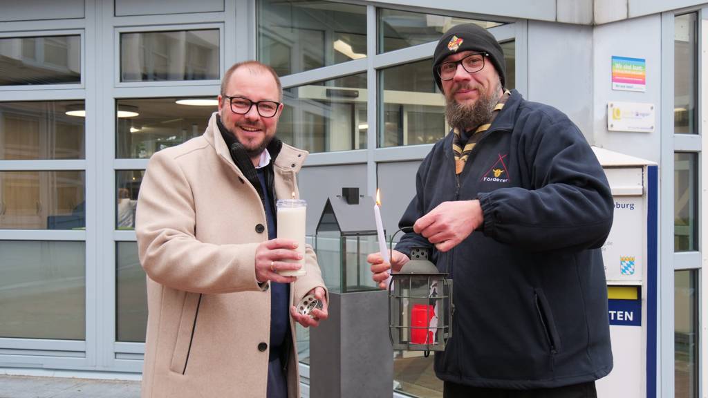 Heute (15.12.) haben Landrat Sebastian Straubel und Alexander Müller, Vorsitzender der Pfadfinder Förderer Stiftung, gemeinsam am Landratsamt das diesjährige Friedenslicht entzündet. Es wird bis zum 7. Januar am Haupteingang des Landratsamtes leuchten.