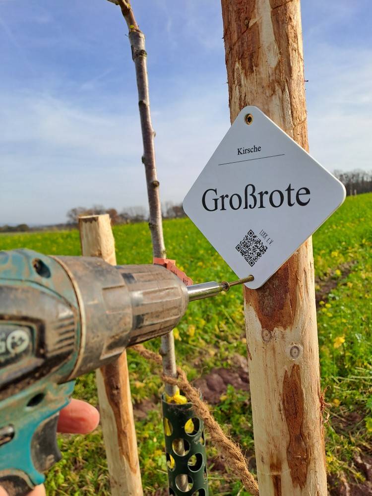 So konnten im November in Roßfeld insgesamt 34 Kirschbäume auf einer Fläche des Landkreises gesetzt werden! Diese 34 Bäume enthalten zusammen 19 unterschiedliche Sorten!