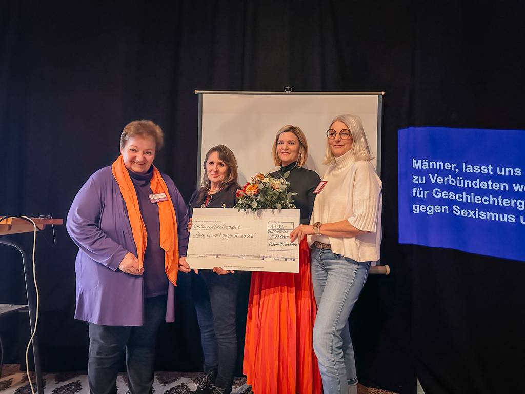 Ein Zeichen im Kampf gegen die Gewalt an Frauen und Mädchen setzte auch Jacqueline Potzel vom Raum 96 in Bad Staffelstein. Sie überreichte dem Frauenhaus Coburg eine Spende in Höhe von 1.500 Euro (siehe Foto).