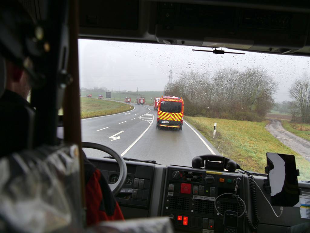 Bei der Übung geht es darum, die Abläufe einer Fahrt in der Kolonne zu trainieren. Wichtig dabei: Die Marschkolonne mit den Fahrzeugen aus dem gesamten Landkreis ist mit Sonderrechten unterwegs – leicht erkennbar allesamt mit Blaulicht. Zu den Sonderrechten gehört auch, dass die Kolonne mit der gebotenen Vorsicht auch bei Rotlicht geschlossen über Ampelkreuzungen fahren darf.