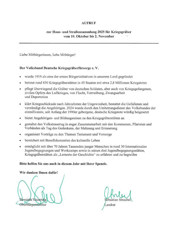Landrat Sebastian Straubel und Coburgs Oberbürgermeister, Dominik Sauerteig, haben gemeinsam einen Aufruf unterzeichnet, um die Sammlung zu unterstützen.