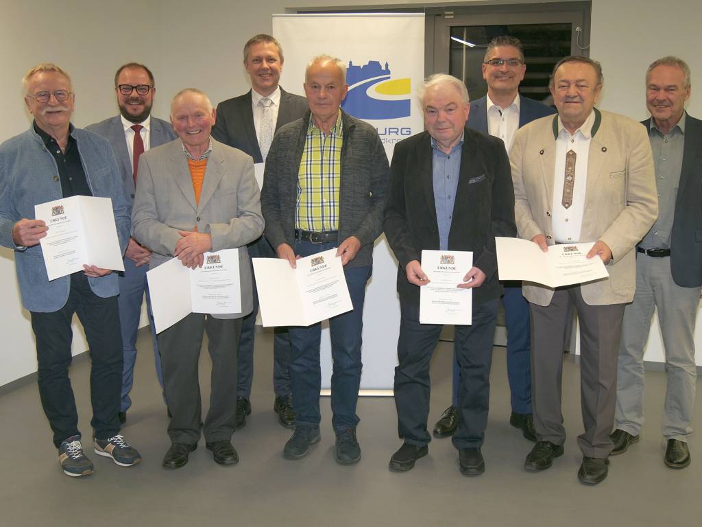 Bürgermeister, Gemeinderäte und Ortsbetreuer – das sind Funktionen im gesellschaftlichen Leben, bei denen sich Menschen im Sinne des Gemeinwohls einsetzen. Um dieses oft im Ehrenamt ausgeübte Engagement zu würdigen, gibt es in Bayern die vom Staatsministerium des Innern, für Sport und Integration verliehenen Kommunalen Dankurkunden. Bei einer Feierstunde im „Haus der Regionalentwicklung“ hat Landrat Sebastian Straubel sieben Persönlichkeiten aus dem Landkreis eine Kommunale Dankurkunde überreicht.