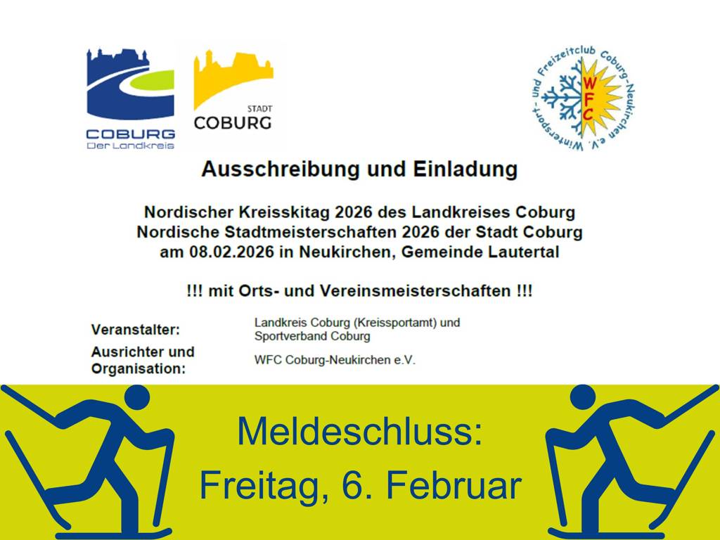 Nach dem sehr erfolgreichen alpinen Kreisskitag am vergangenen Wochenende sind jetzt die Langläuferinnen und Langläufer an der Reihe: Am kommenden Sonntag, 8. Februar, findet als gemeinsame Veranstaltung des WFC Coburg-Neukirchen und des Landkreises Coburg der nordische Kreisskitag auf den Loipen rund um den „Neukirchener Gletscher“ statt.