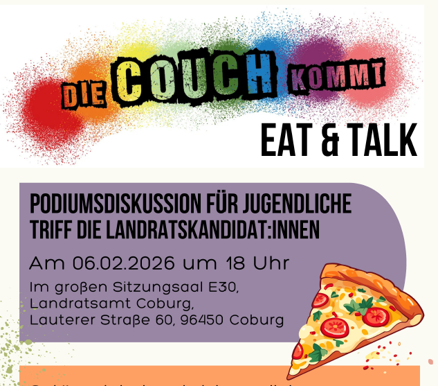 Sei live dabei, wenn im Landratsamt Coburg die Podiumsdiskussion für Jugendliche mit den Landratskandidat:innen stattfindet!